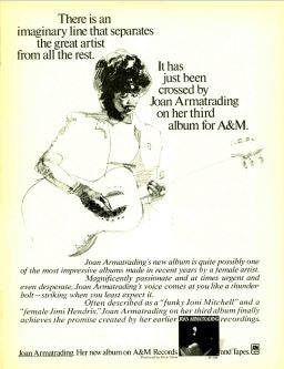 What a great tagline! Later in that issue they wrote, “This thoroughly diverse and immensely enjoyable LP shows strong influences of jazz, blues, pop, soul and folk,” and that Armatrading “delivers lyrically touching and introspective ballads.”1